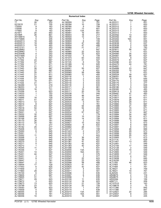 The Catalog ID: PC9720 covers part numbers for John Deere 1270E T3 Wheeled Harvesters it were meticulously reviewed and accurate as of the date of publication. To ensure you receive the exact components suited to your machinery, we highly recommend verifying each part number with your local John Deere dealer before placing your order. This extra step guarantees that you get the correct part for your specific model, preventing downtime and maximizing performance.